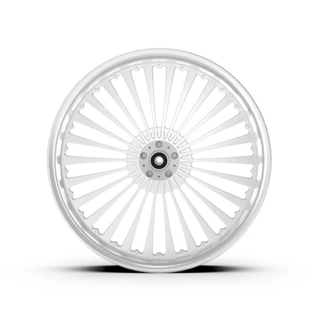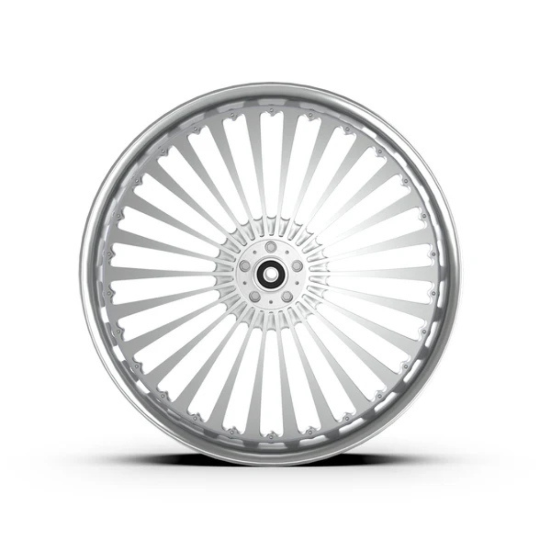 Each wheel is machined from our own rotary-forged billet blanks. In addition to our standard designs, we also offer custom design cutting—additional programming cost applies. Wheels are available in Show Chrome Plated, Contrast Cut, and our full selection of standard colors.