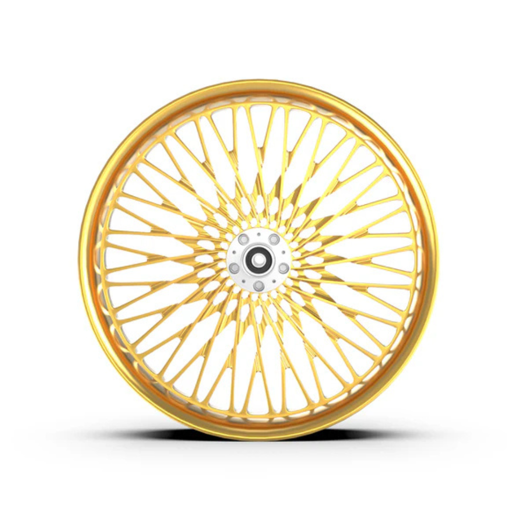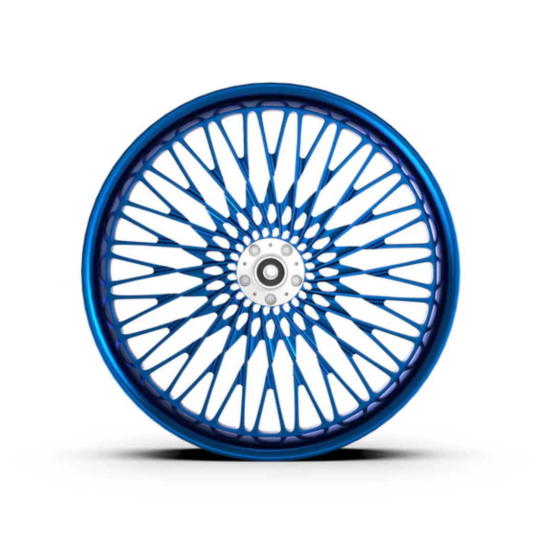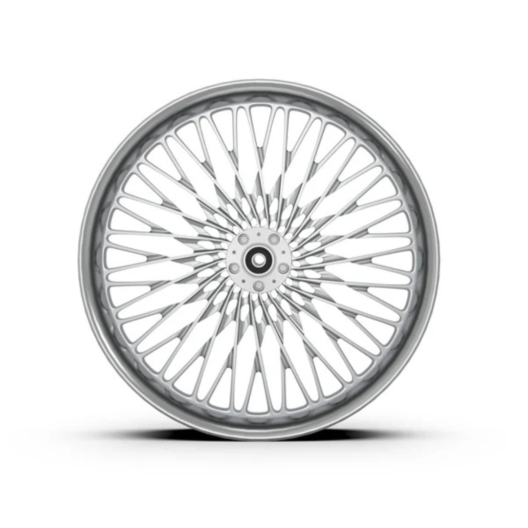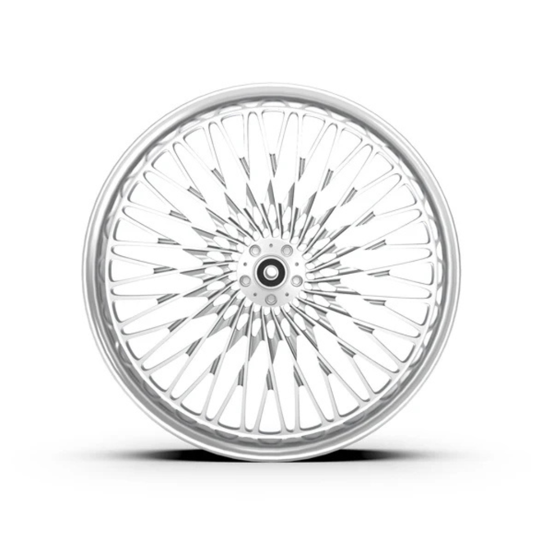 Each wheel is precision machined from our own rotary-forged billet blanks. In addition to our standard designs, we also offer custom design cutting for an additional programming cost. Wheels are available in Show Chrome Plated, Contrast Cut (Machine Black), and our full range of standard color options.