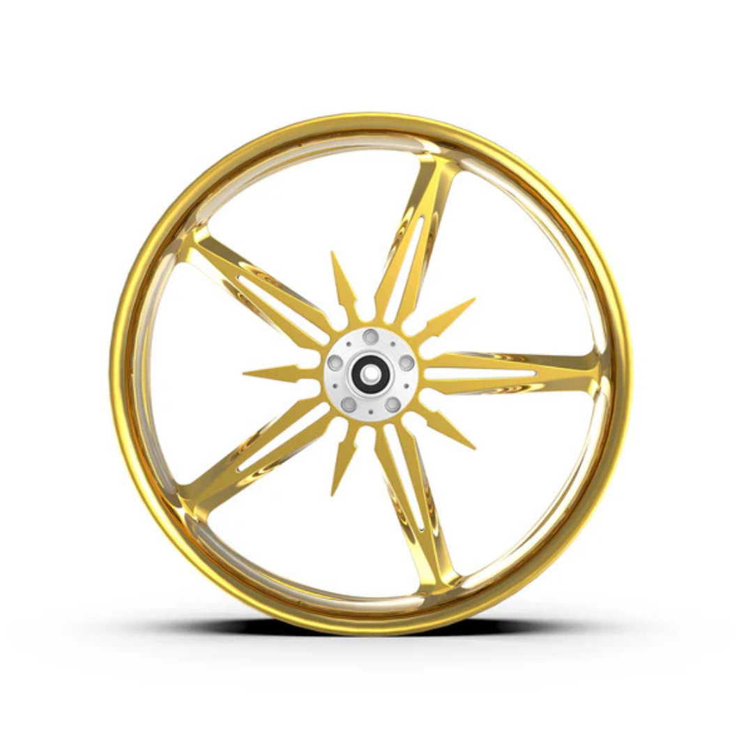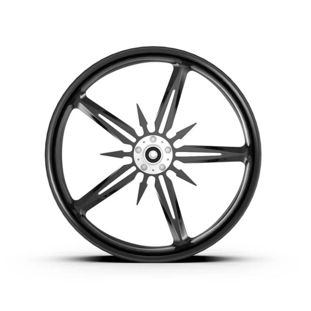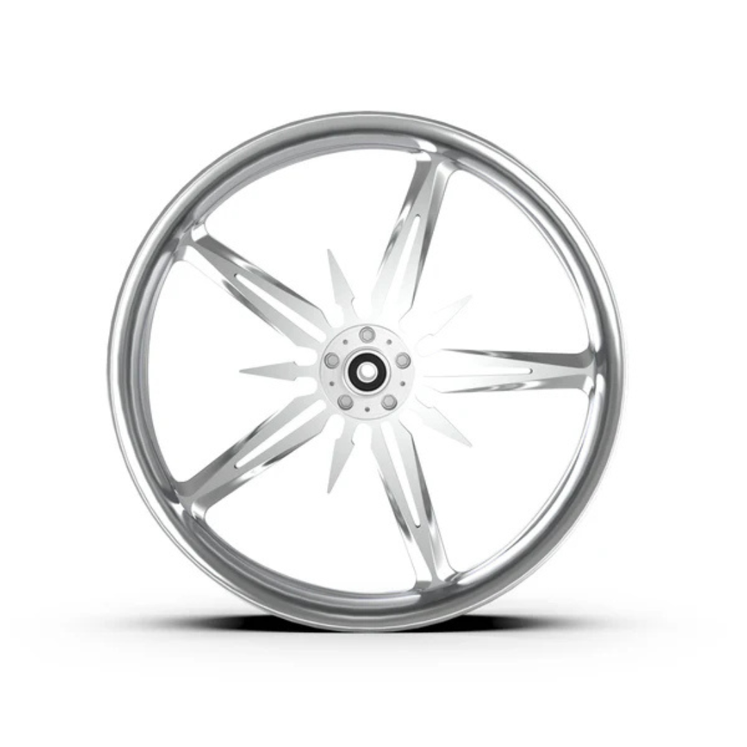 Each wheel is machined from our own rotary-forged billet blanks. In addition to our standard designs, we can cut your custom designs—additional programming costs apply. Wheels are available in Show Chrome Plated, Contrast Cut, and our full selection of standard colors.