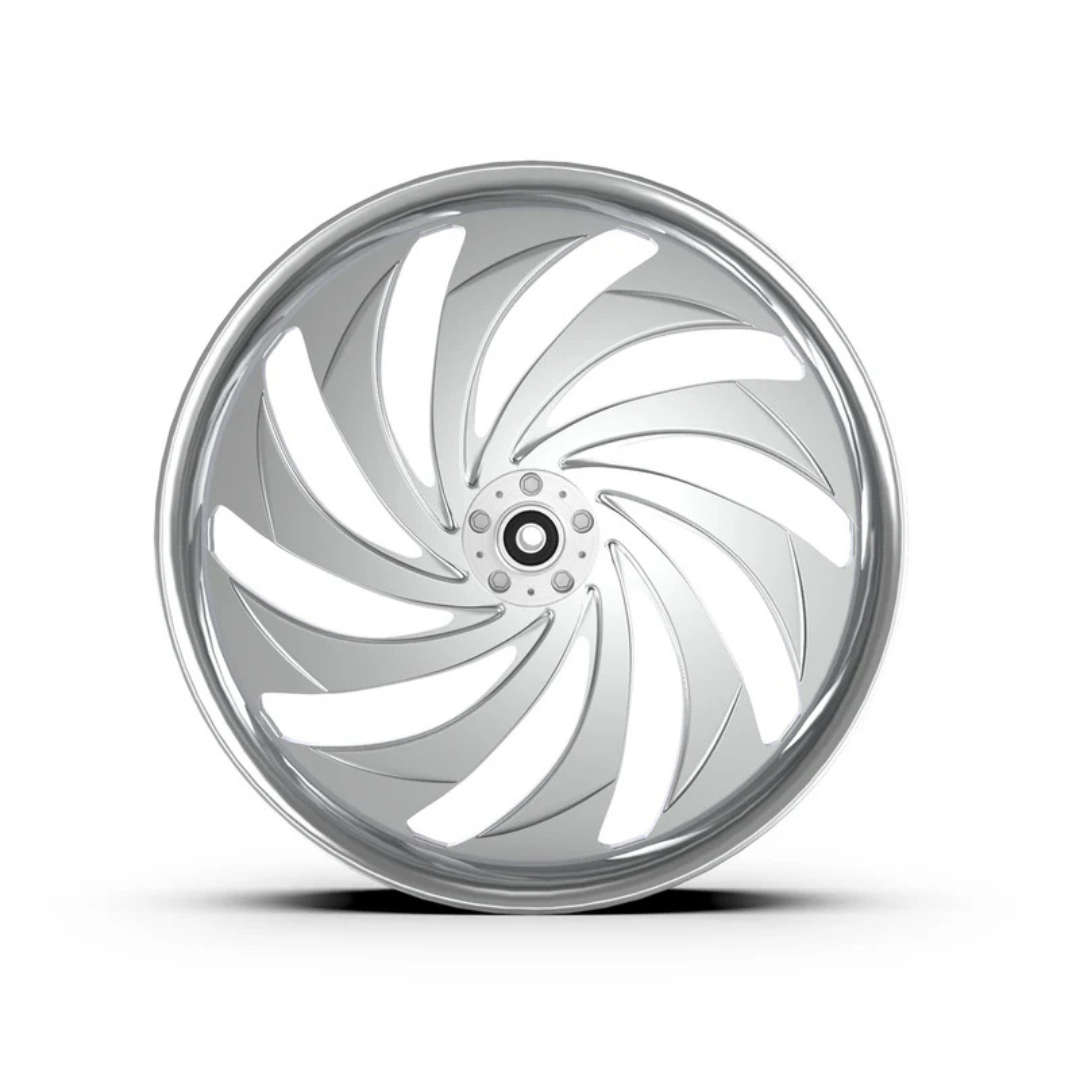 Each wheel is machined from our own rotary-forged billet blanks. In addition to our standard designs, we also offer custom design cutting—additional programming cost applies. Wheels are available in Show Chrome Plated, Contrast Cut, and our full range of standard colors.